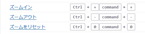とありますので、Ctrl または command キーを押しながら「+」「-」「0」を押す、これが正解でしょう。