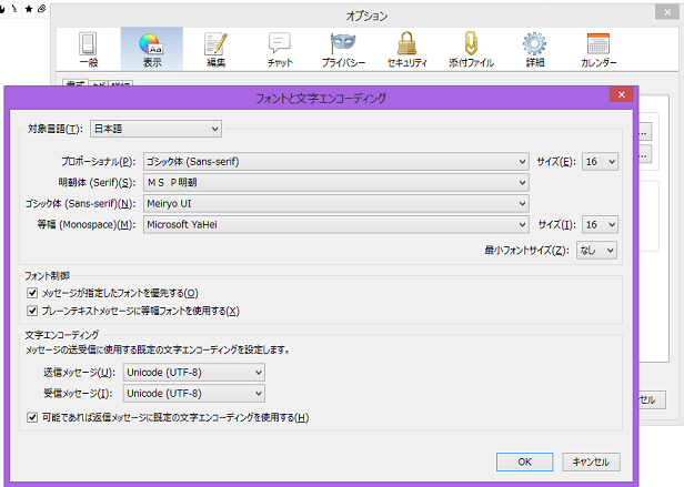 [環境:OS:Windows 7 Professional SP1 + Thunderbird 38.0.1 日本語版]