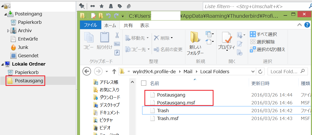 プロファイル内では、「送信トレイ」という日本語のファイル名にはなりません。