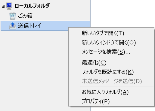 2.また、Thunderbird 上では送信トレイは、以下のように独自のアイコンフォルダ表示になります。