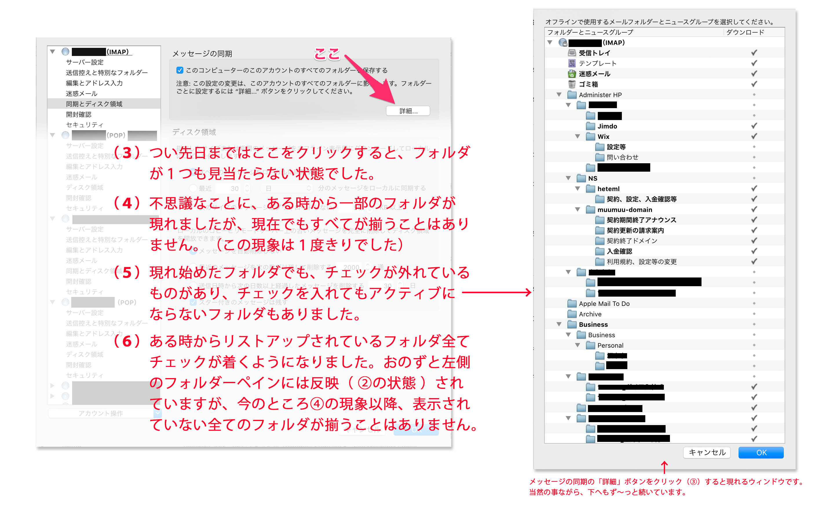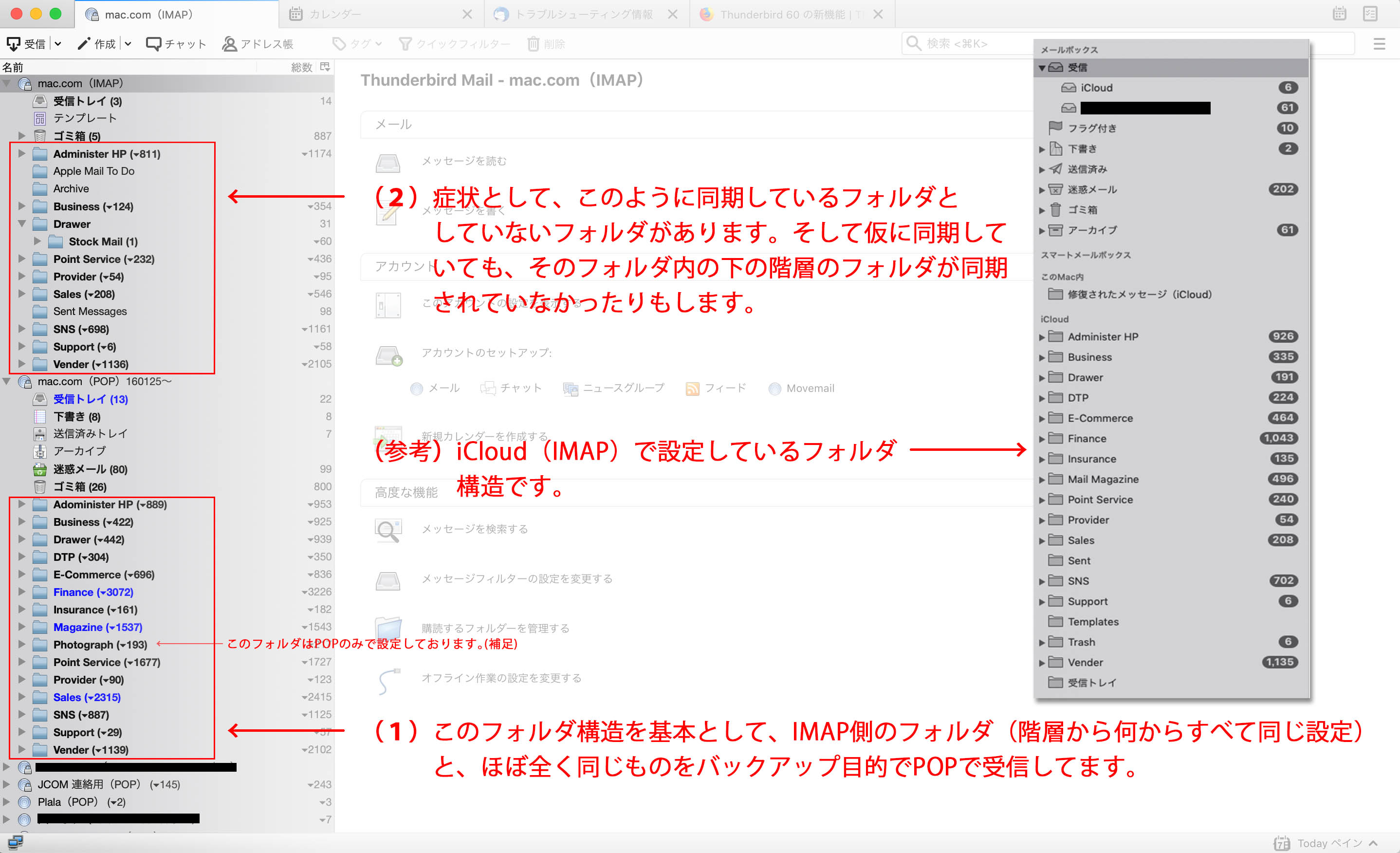 コメント: バックアップとしているPOPのフォルダ画面と今回問題視しているIMAPのフォルダ画面です。