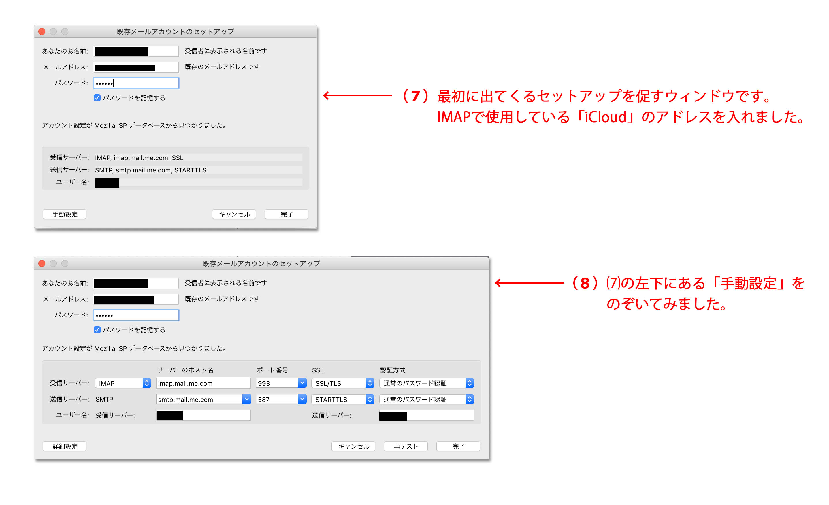 本来(7)で入力する3項目は以前から使っているIMAPのアカウント情報を入れればよかったのでしょうか?