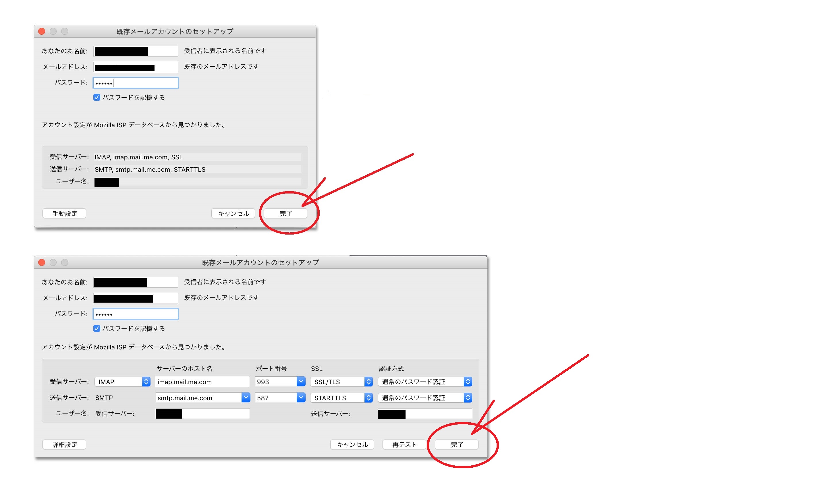 自動セットアップでやったはずですから、入力すべきものは「あなたのお名前」「メールアドレス」「パスワード」の3つのはず。