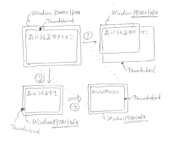 ・Thunderbird画面の全てが Windows画面の中に収まったら