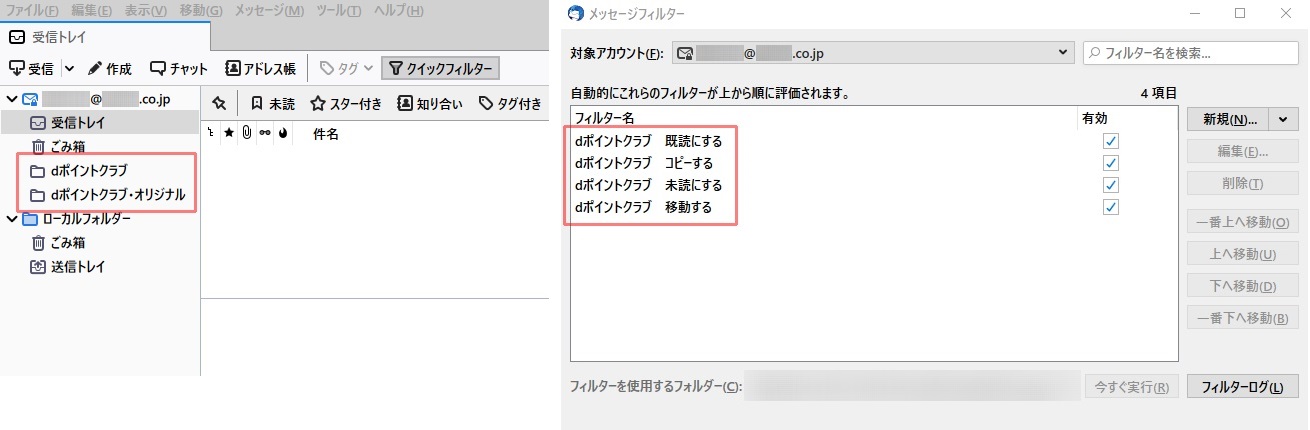 私の方法通りのメールフォルダーを作成して、必要な元メールを d-point(prefix) フォルダーにコピーできたら返信ください。