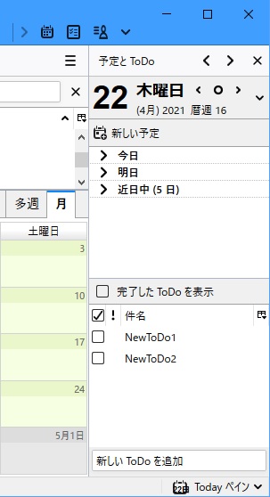 トピックのレビュー - TodayペインのTodo表示がされなくなった