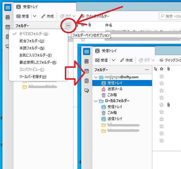 Thunderbird画面上のフォルダペインの標示選択(→末尾画像参照)が