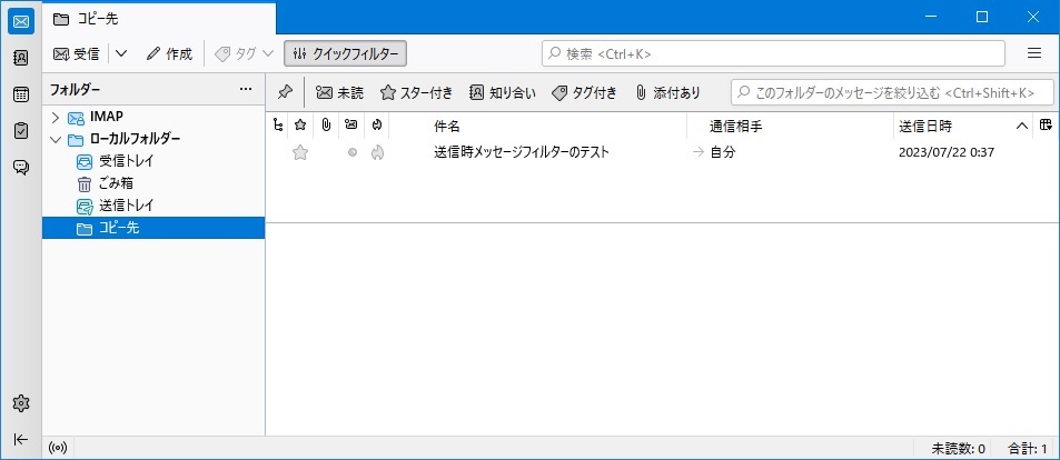 メッセージフィルターは、Thunderbirdのメール送信処理に割り込んで送信メールを振り分けたりはしません。