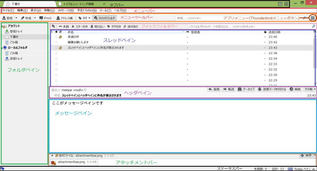 フォルダペインとスレッドペインの大きさ変更っぽい質問のようですね。