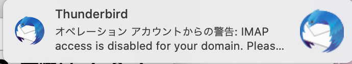 「ドメインでIMAPアクセスが無効になっています。この機能についての質問はドメイン管理者に問い合わせてください。」
