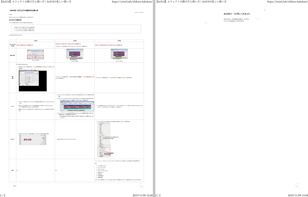 上記URLの中にあるエフェクトの掛け方にある表の部分だけを印字したいのです。