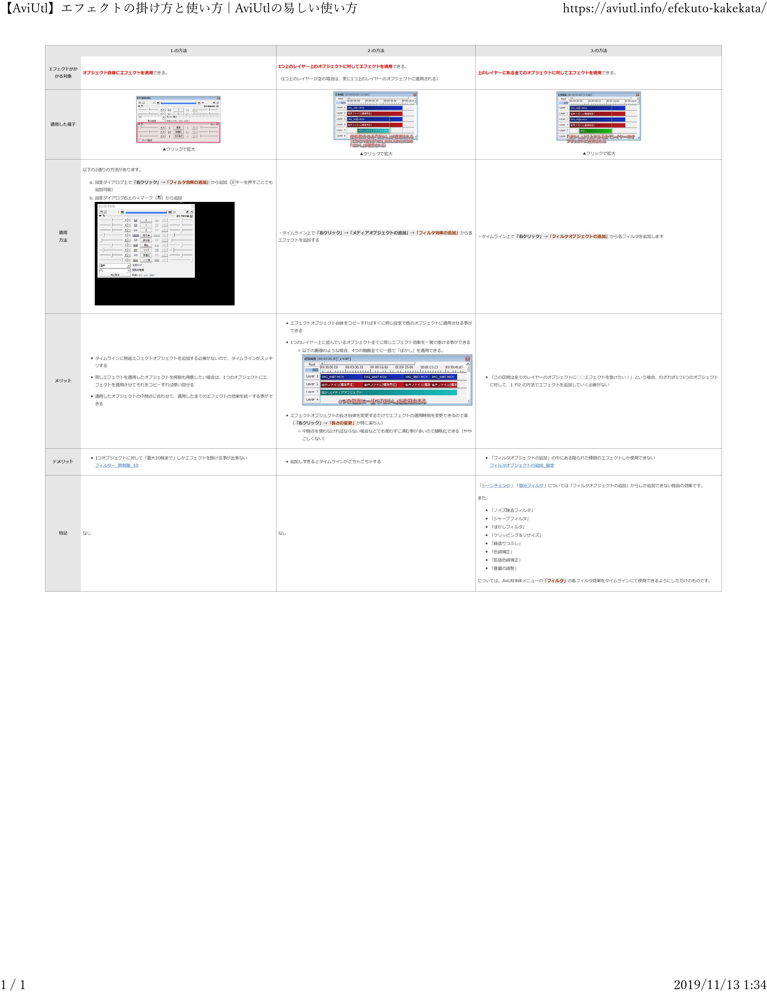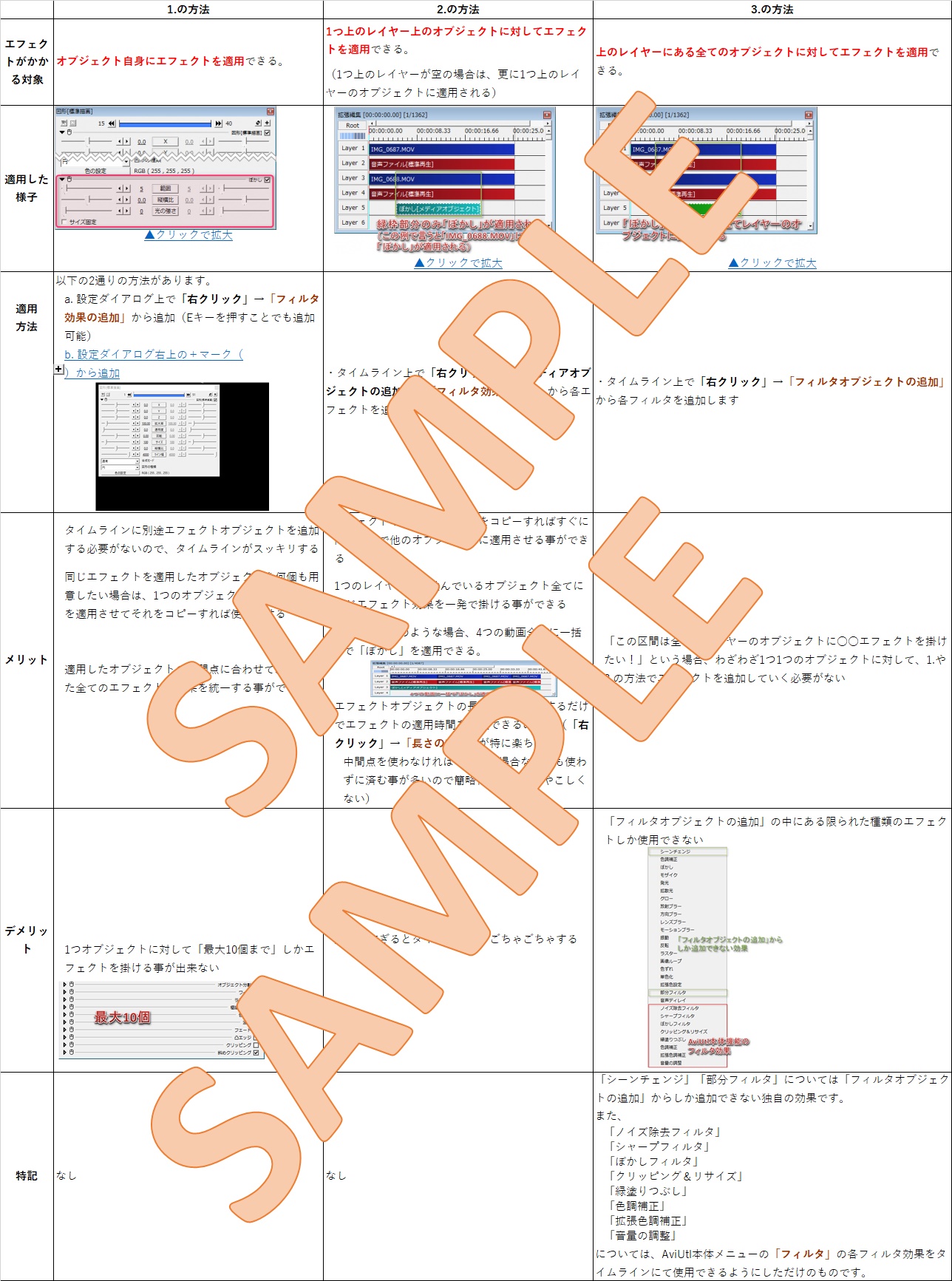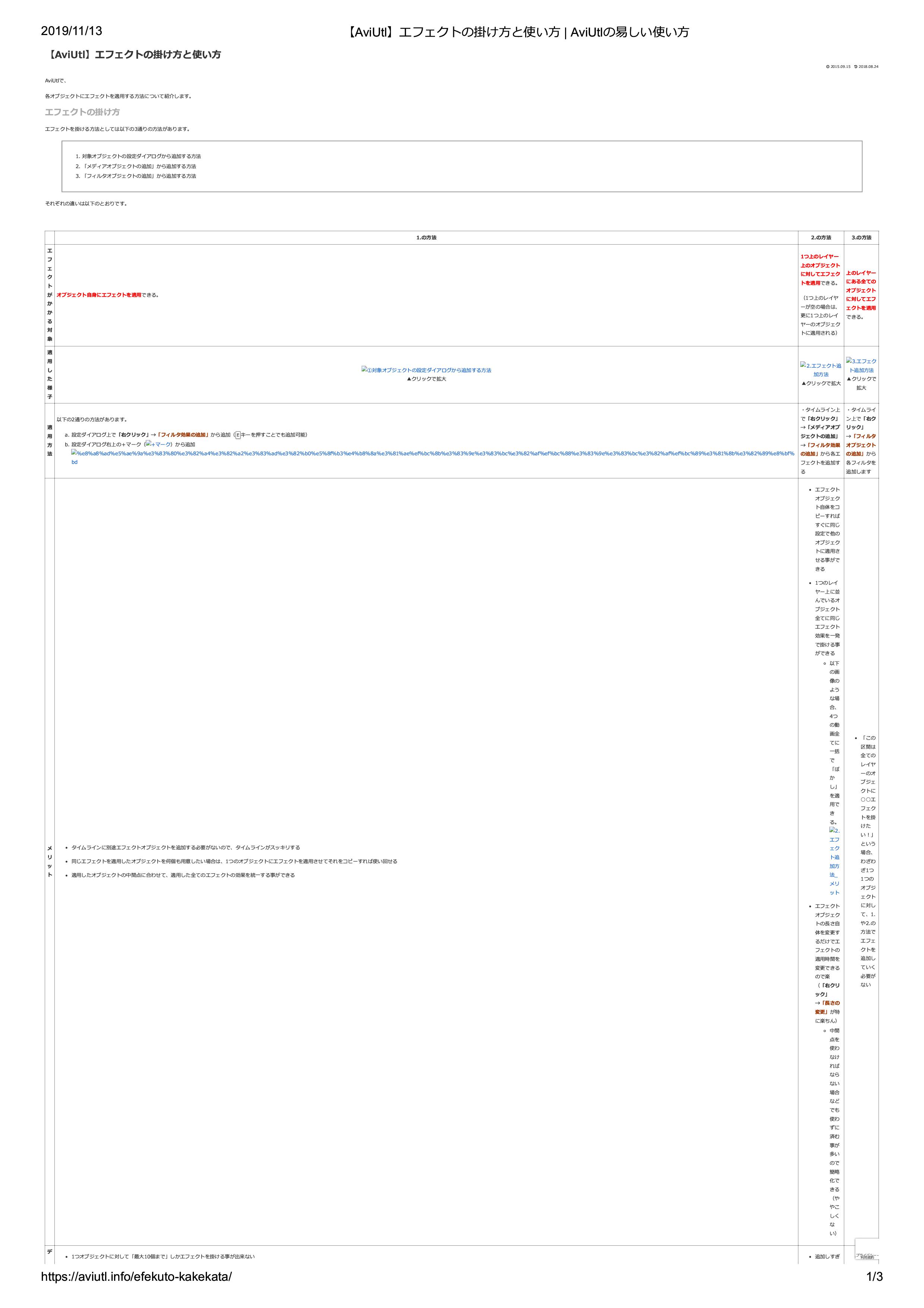 その該当 Webページの「エフェクトの掛け方にある表の部分」に