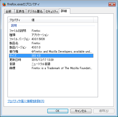 Firefox Setup 43.0.2.exe -> デジタル証明書の署名アルゴリズム= sha256RSA