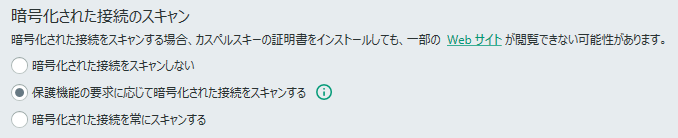 最終的にカスペルスキーのどこかの設定を「暗号化された接続をスキャンしない」とすると