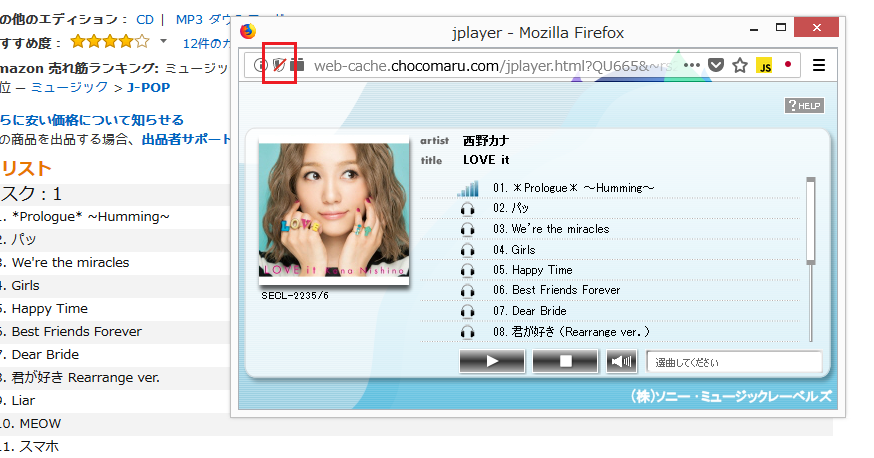 ・(1)、Firefoxの画面上部付近のアイコン表示など