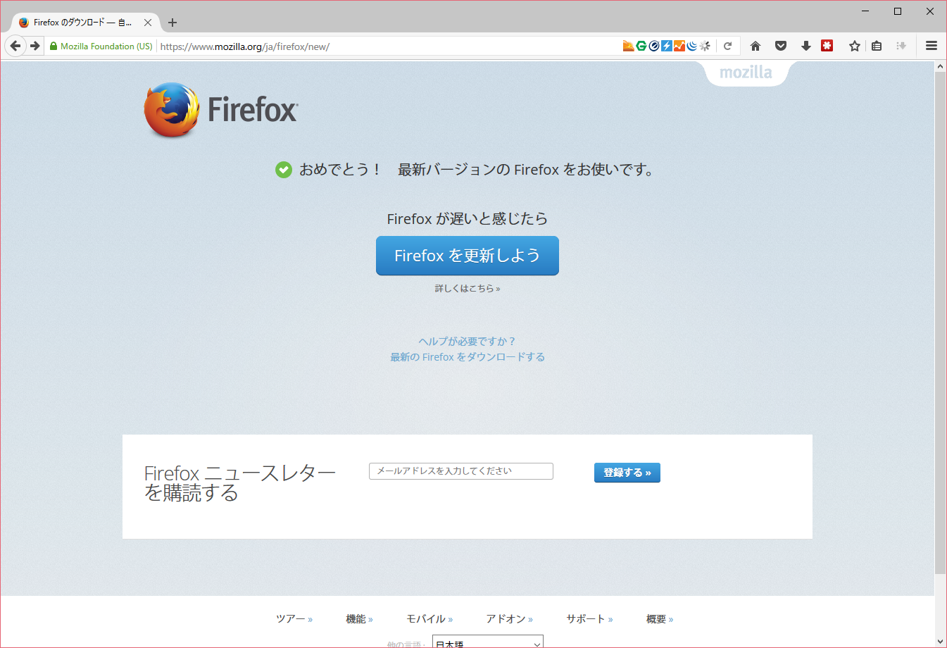 また、firefoxの公式サイトを表示しても最新版扱いされています。