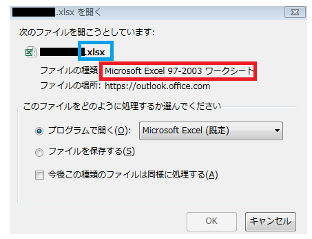 ファイルに添付された拡張子が「xlsx」のファイルをダウンロードしようとした際に、