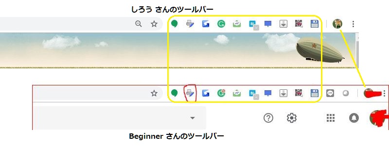 (2) Chromeのツールバーに並んでいるアイコンやアカウントのアイコンに共通の特徴がある(どちらも gyazo.comで画像公開)