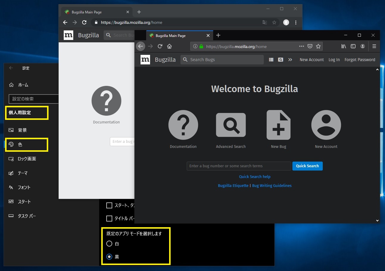 記事で「オペレーティングシステムのダークモード」と言っているのは、Windows 10 の場合、