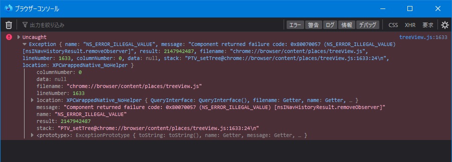 https://hg.mozilla.org/integration/auto ... 6a76c56287 - ブラウザーコンソールを開いておいて、ブックライブ for Windows を起動→終了すると添付画像の例外が発生(Firefox 93では発生しない)