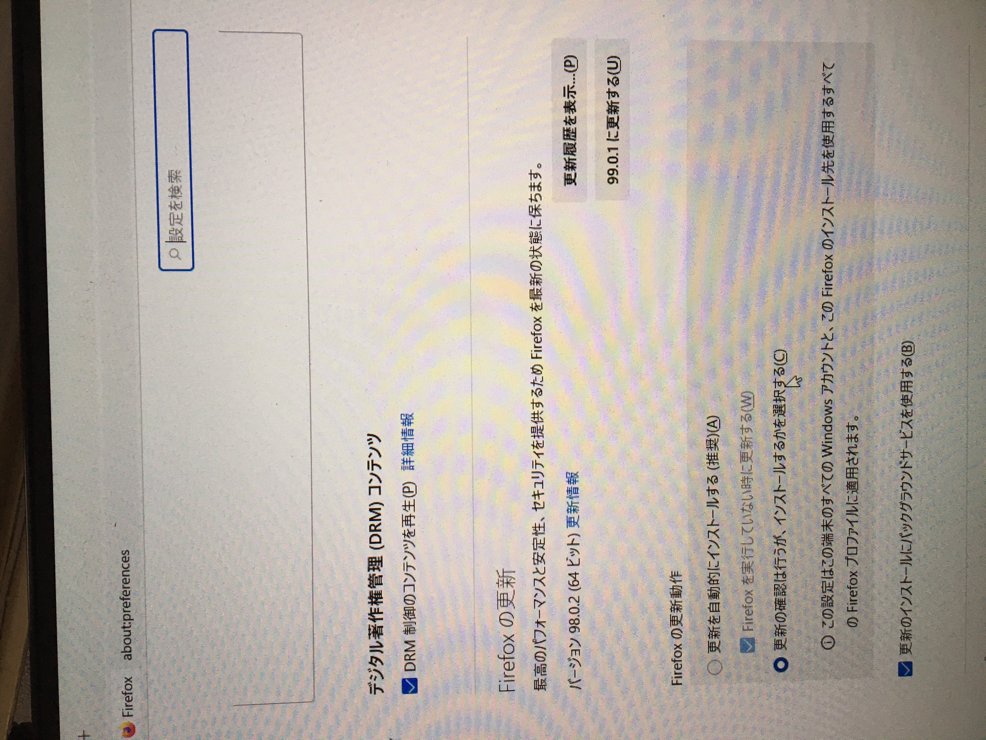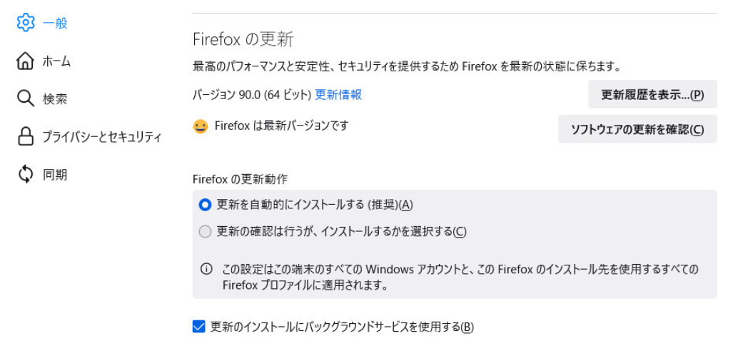 Firefoxのブラウザにてアップデートの更新やソフトウェアの更新を止める方法は、