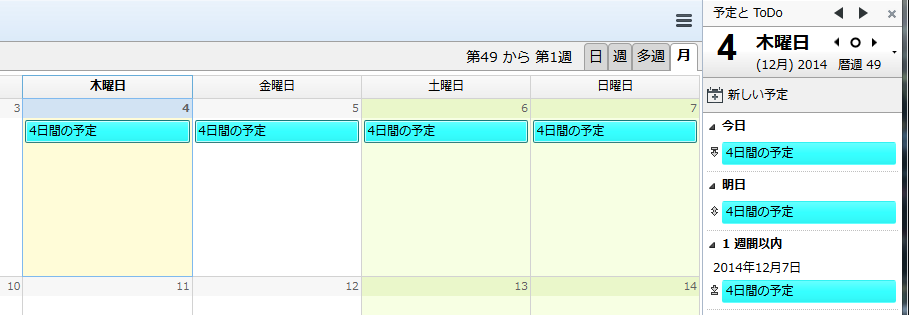 | 記事の件名: | 複数日にまたがった予定の表示について |