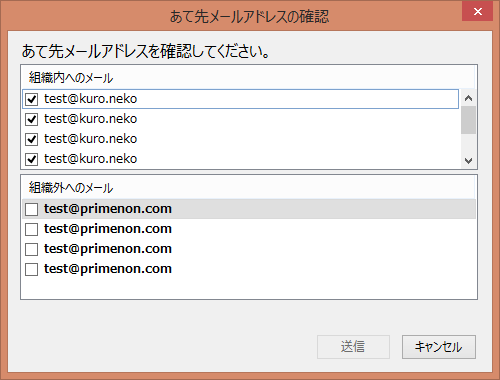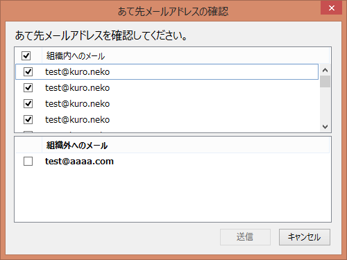 組織内メールアドレス(ダイアログ上部の枠内)に、以前は全体をチェックオンにするためのチェックボックスがありました。