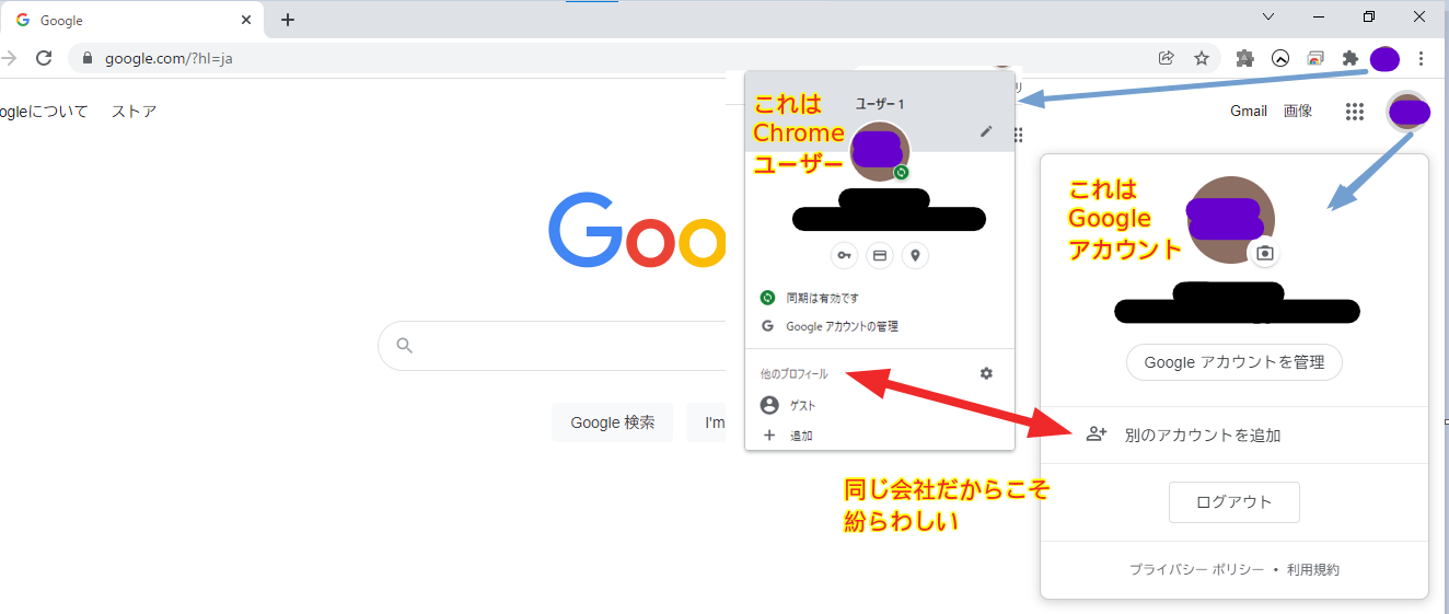 コメント: Chromeは、プロファイルとアカウントが紛らわしい。