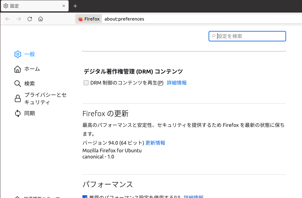 そこには ディストリビューター提供Firefox のバージョン情報と