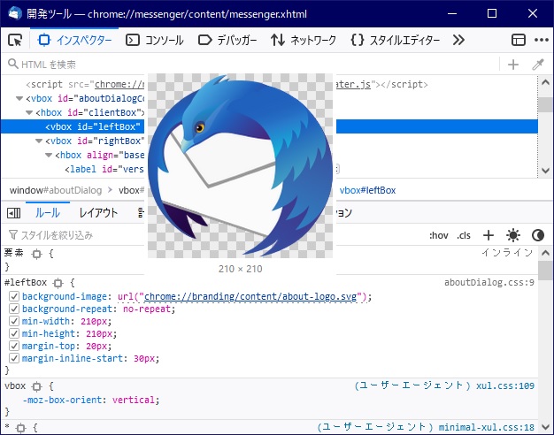 開発ツールのインスペクターで特に目を引くロゴと製品名の部分を見てみました。
