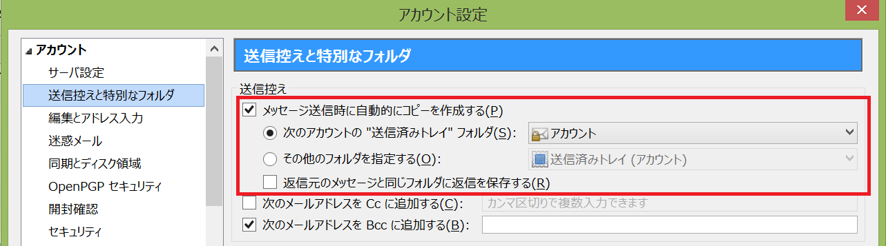 つまり、送信メッセージは自動的にサーバ側の特定のフォルダにコピー保存されていると思わ