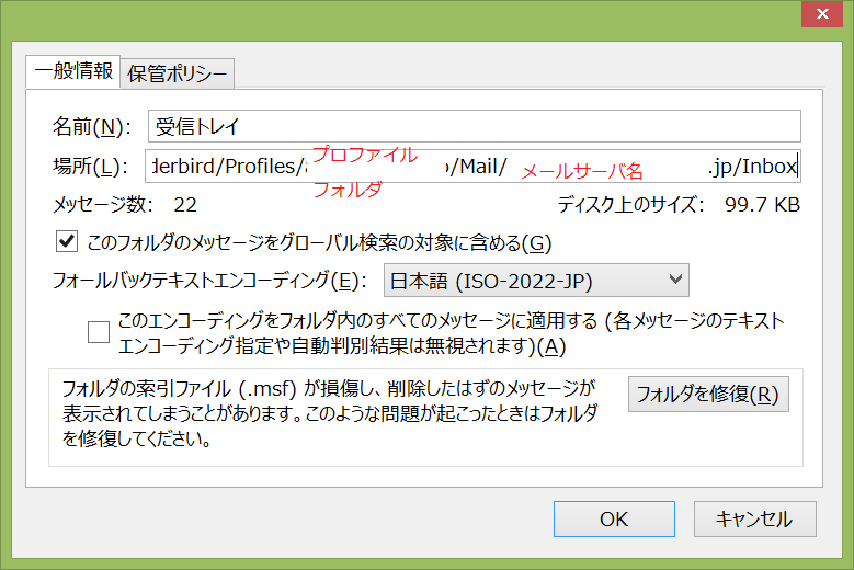 ・mailbox:///C:/Users/私のユーザ名/AppData/Roaming/Thunderbird/Profiles/yh8mei9m.default/Mail/pop3.sample.co.jp/Inbox (1)