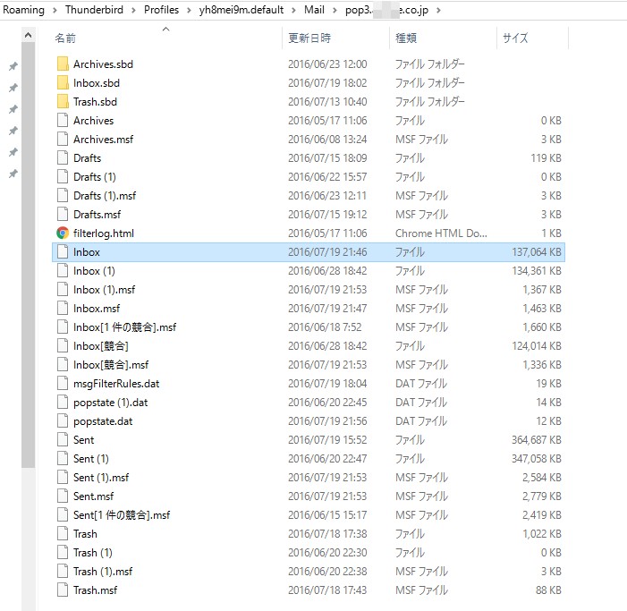 ・mailbox:///C:/Users/私のユーザ名/AppData/Roaming/Thunderbird/Profiles/yh8mei9m.default/Mail/pop3.sample.co.jp/Inbox[競合]