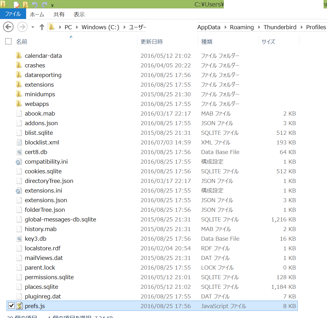 また、Thunderbird を起動して何もせず終了しただけでも、データの更新が発生して、タイムスタンプが変化するファイルがあります。