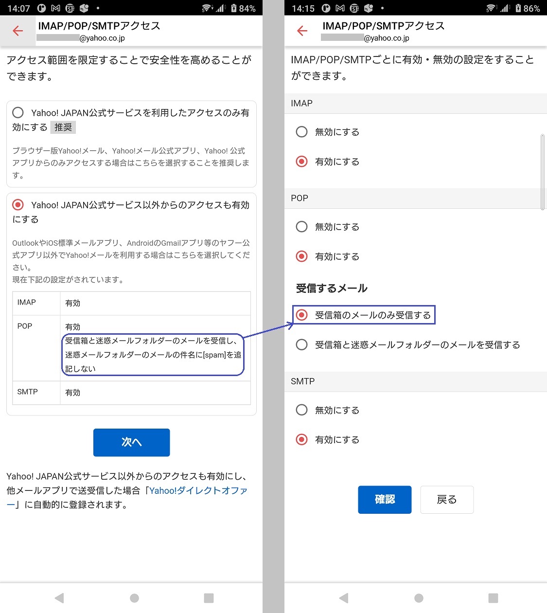 トラブルが起きた時に、「YahooのWEBでYahoo!メール側の設定も確認する」ということですね。