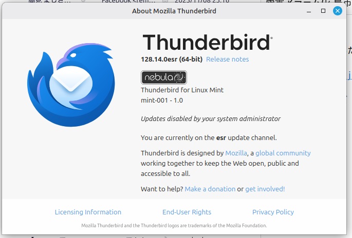 thunderbird(128.14.0esr(64ビット)Thunderbird for Linux Mint mint-001-1.0)