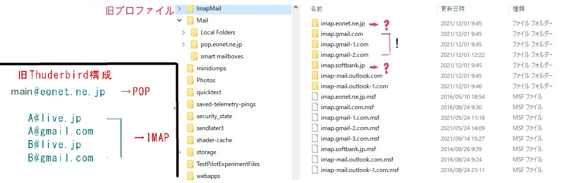 フォルダー内のメールを確認したら判別はつくと思いますので、必要に応じてリネームしていただければと思います。