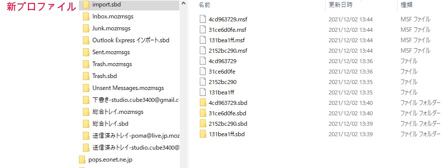 アカウント名と異なる英数字羅列のフォルダがimport.sbd内に生成されており