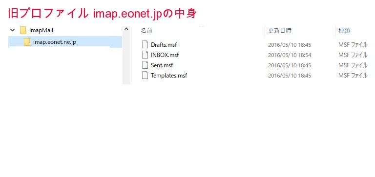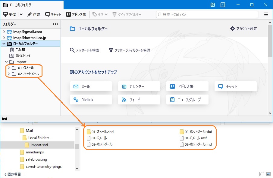 import下の各アカウントのフォルダーにインポートしたメッセージについては、