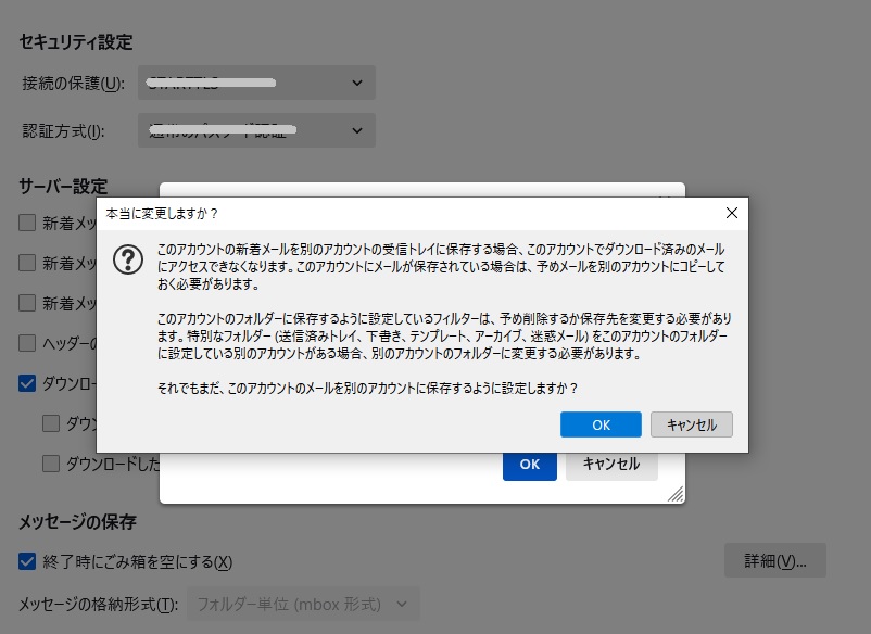・まず一つだけ「ローカルフォルダへ切り替えたい」POPアカウントを選ぶ