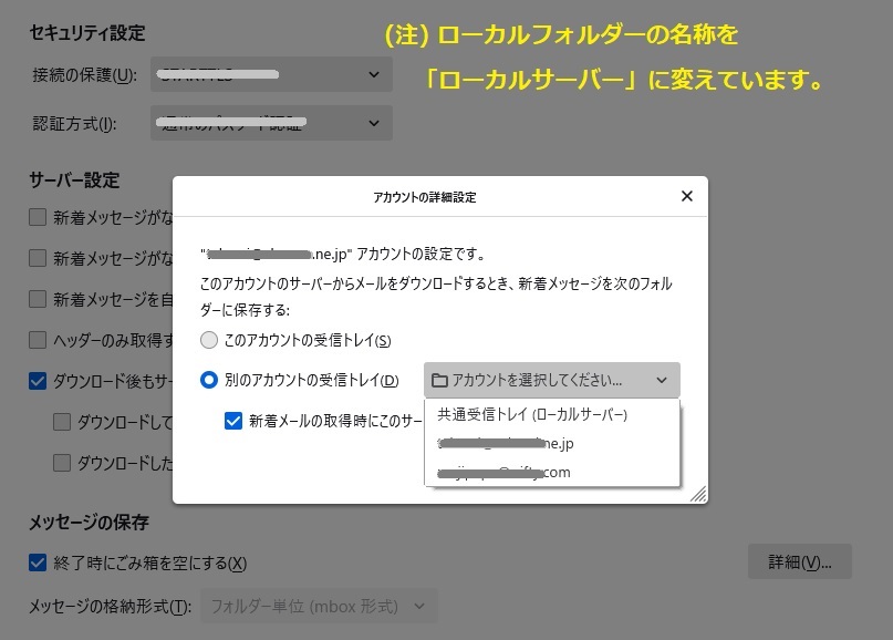 「受信メールは「ローカルフォルダ」に入ります」設定と