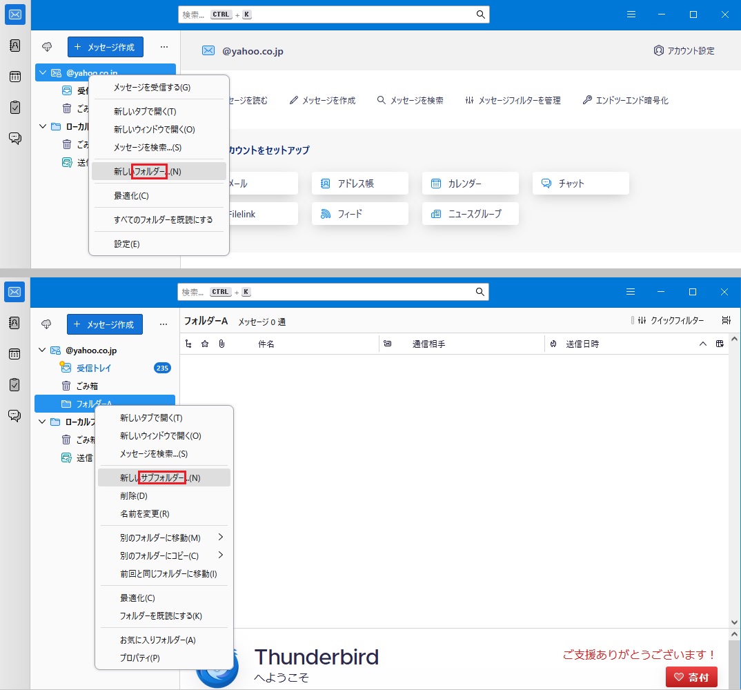 Thunderbird画面の フォルダペイン に並ぶ Local Folders の中は