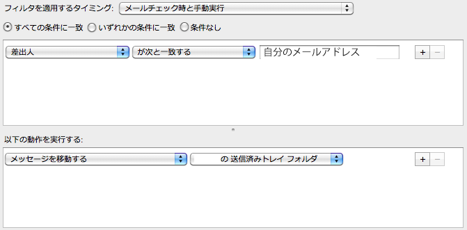 自分の出したメールは受信トレイではなく、送信済みトレイに保存したいという