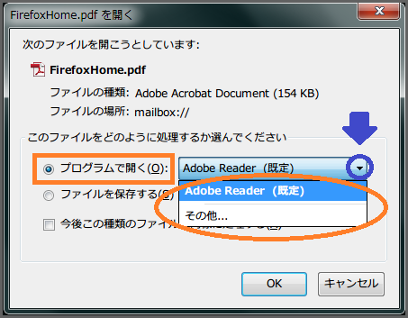そのメッセージの添付ファイルを開く操作で、正しいアプリケーションを選択して、開いてみま