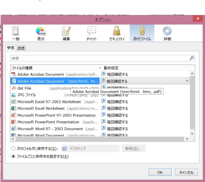 [動作設定] 欄で、PDF や PTT ファイルを選び、単純に「動作設定を削除する」を実行するのが