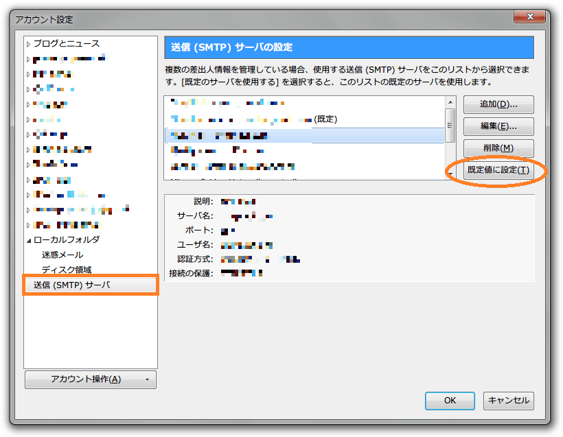 ・各アカウントのデフォルトの送信アカウントは,各々の送信サーバに設定.