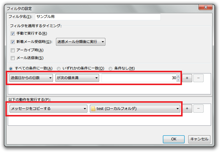 1.メッセージフィルタを作成し、最新の 30 日分のメッセージのみ任意の別フォルダにコピー