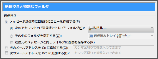 アカウント設定の「送信控えと特別なフォルダ」の設定内容を教えてください。