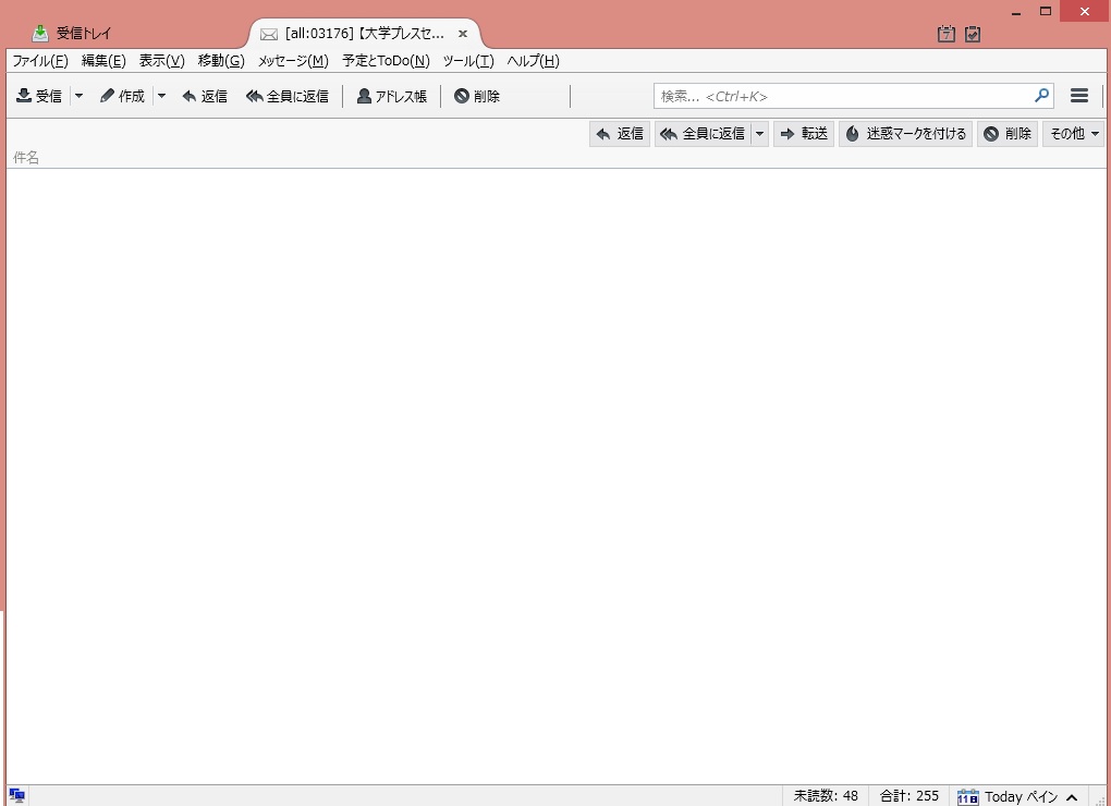 コメント: タブには件名が出ていますが、本文などは消えています。