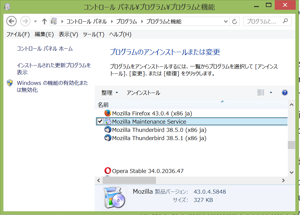 「Windowsの[プログラムのアンインストールまたは変更]」というのは、コントロールパネル内の「プログラムと機能」内のものですね。